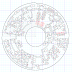 roughly circular plaque of dark wood, about 3 inches in diameter, onto which